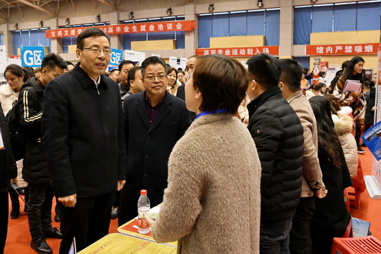 11月30日,我校在高新校区体育馆举行了2020届毕业生就业洽谈会。校长郭霄鹏、党委副书记栾宏到洽谈会现场检查指导工作,调研用人单位对学生的需求状况,并与用人单位及毕业生进行了亲切交谈。