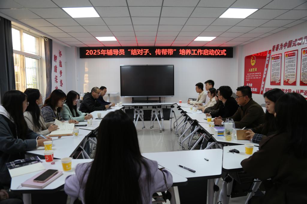 会上,杨子祁宣读了《2025年辅导员“结对子、传帮带”培养工作结对名单》及相关考核要求,辅导员发展中心主任冯森为指导教师颁发聘书并合影留念。