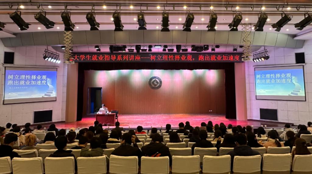 3月12日下午,我校在高新校区音乐厅举办“树立理性择业观,跑出就业加速度”大学生就业指导专题讲座。