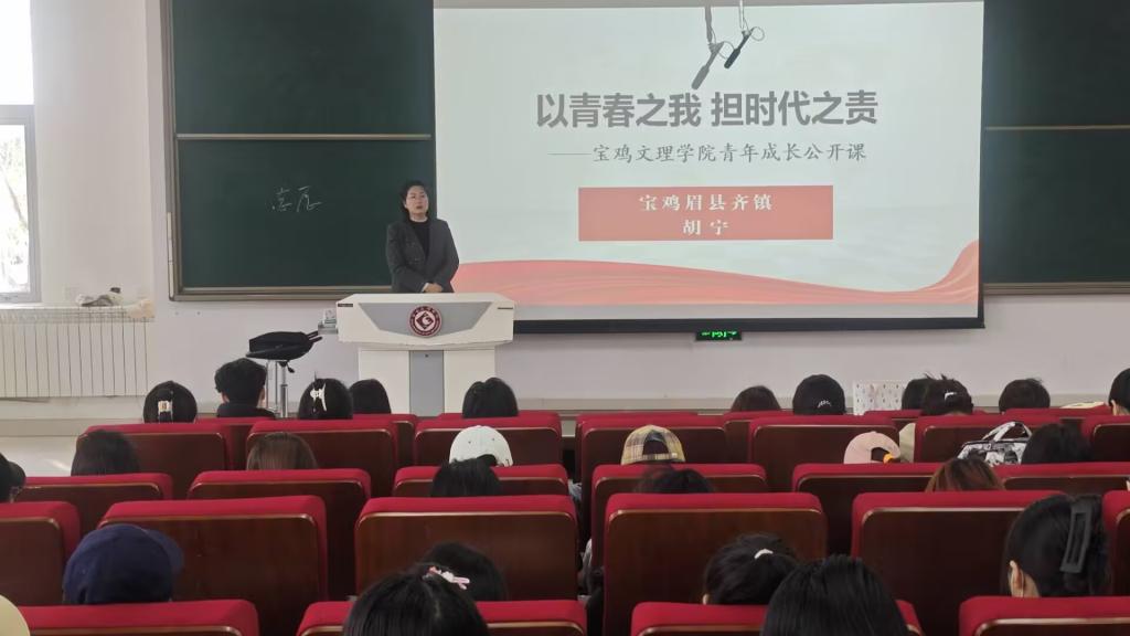 3月27日上午,文学与新闻传播学院邀请宝鸡市眉县齐镇党委书记胡宁,为在校学生开展“以青春之我 担时代之责”青年成长公开课,同步分享公务员招考与面试技巧,助力青年成长成才。