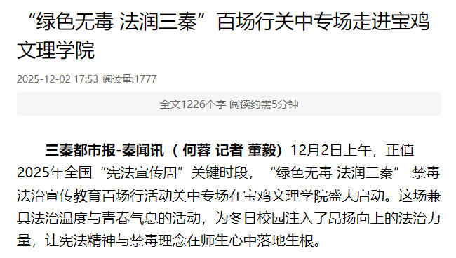 近日,学校召开第十七次学生代表大会、第五次研究生代表大会,入选教育部专业大模型赋能AI+应用型大学建设项目院校,全力做好访企拓岗促就业各项工作,“绿色无毒 法润三秦”百场行关中专场走进我校,“非物质文化遗产景观与地方认同建构”学术研讨会在学校召开等活动引起陕西教育信息网、阳光网、三秦都市报、起点新闻、视界观、中华网、今日头条等多家媒体广泛关注和报道。