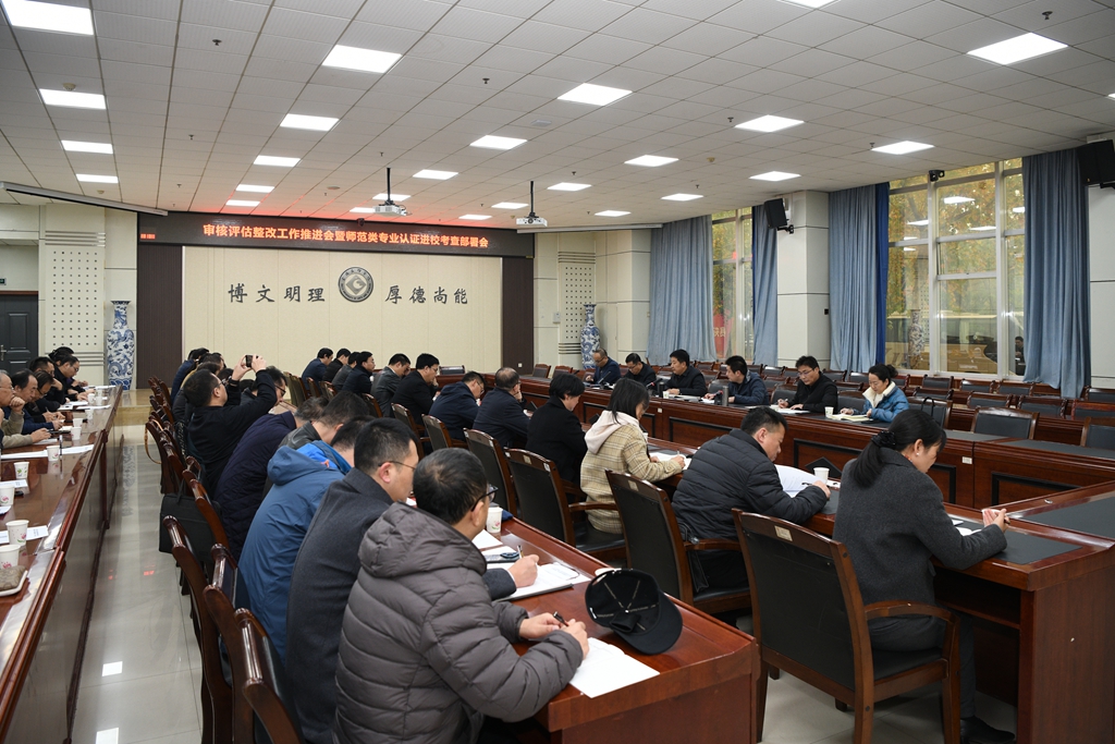 11月6日下午,我校在高新校区甘棠厅召开审核评估整改工作推进会暨师范类专业认证进校考查部署会。会议由副校长、审核评估整改工作领导小组常务副组长冯飞龙主持。