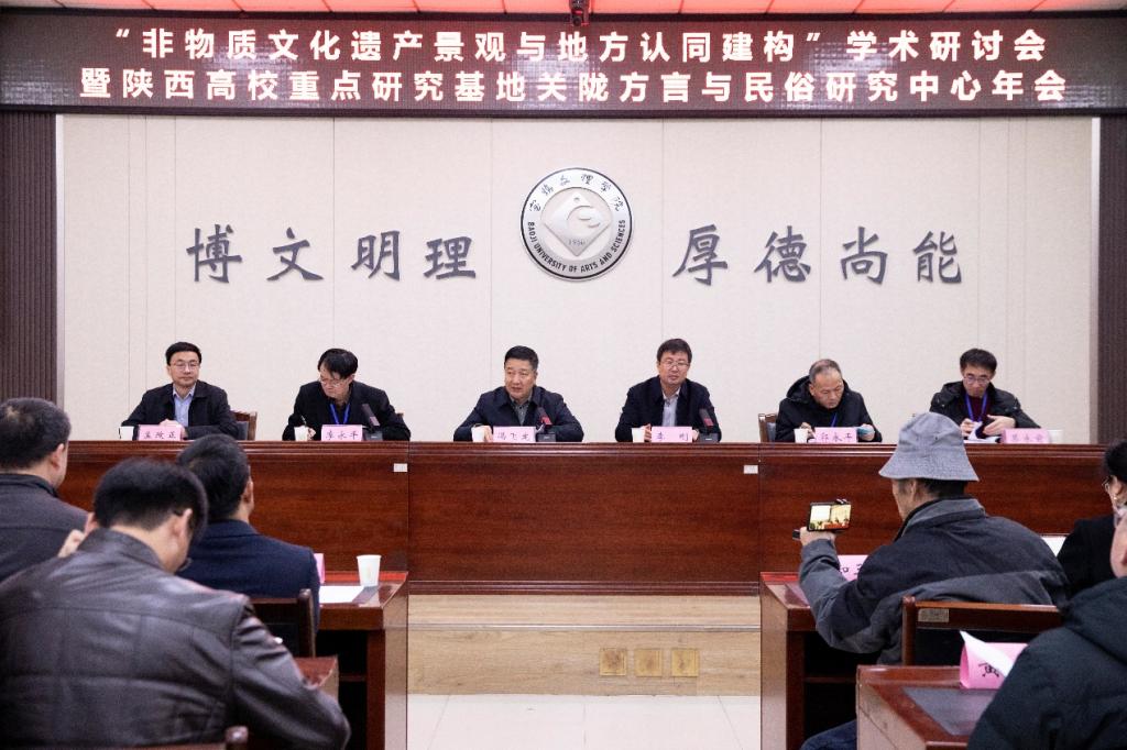 11月29日,“非物质文化遗产景观与地方认同建构”学术研讨会暨陕西高校重点研究基地关陇方言与民俗研究中心年会,在我校高新校区甘棠厅召开。副校长冯飞龙教授、中共宝鸡市委宣传部副部长李刚、陕西师范大学李永平教授出席开幕式并致辞。开幕式由文学与新闻传播学院院长、关陇方言与民俗研究中心主任孟改正主持。