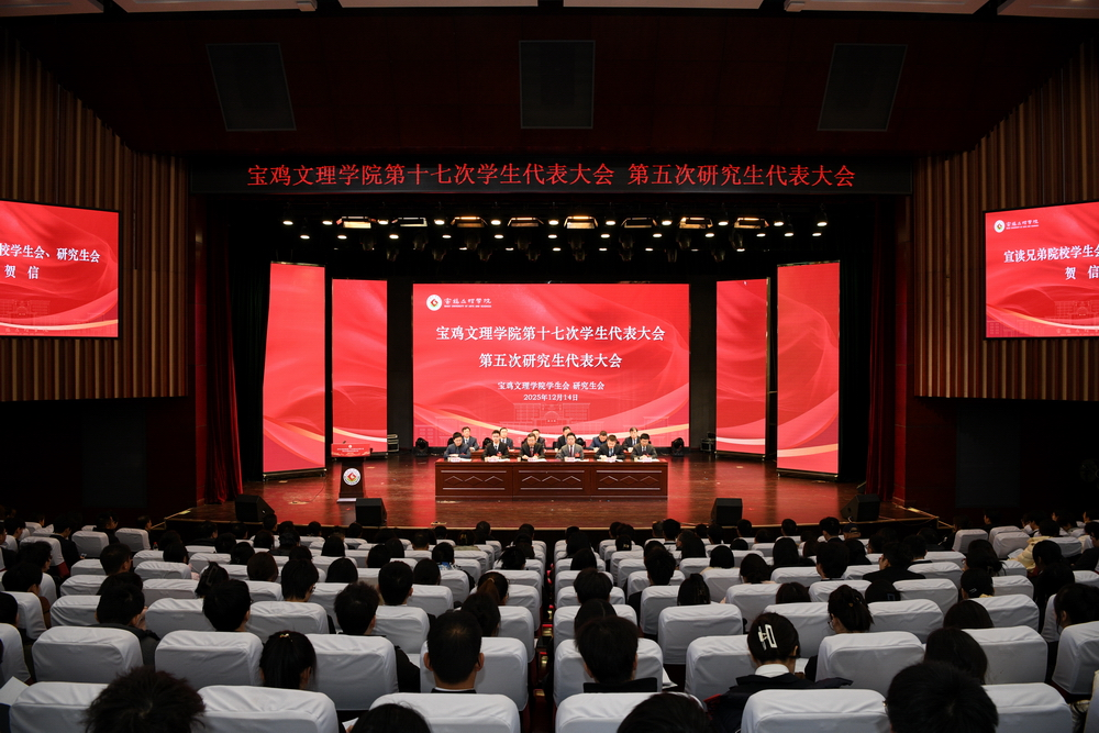 12月14日,我校第十七次学生代表大会、第五次研究生代表大会在高新校区博文楼报告厅召开。校党委书记郭霄鹏、党委副书记韩干校,陕西省学生联合会驻会执行主席张一洋出席大会。会议由校团委书记郭理想主持。