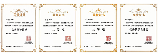 近日,2025年“田家炳杯”全日制教育硕士专业学位研究生学科教学(思政)专业教学技能大赛全国决赛在江西师范大学举行。我校政法与历史学院2024级学科教学(思政)专业研究生张青、仵奕奕、王仁聪慧分别获二等奖、三等奖和优秀教学设计奖,杨福荣老师获“优秀指导教师”。